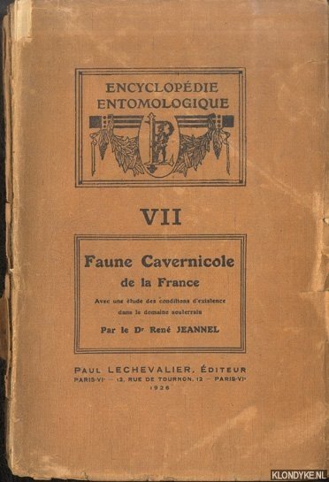 Jeannel, René - Faune cavernicole de la France Avec une étude