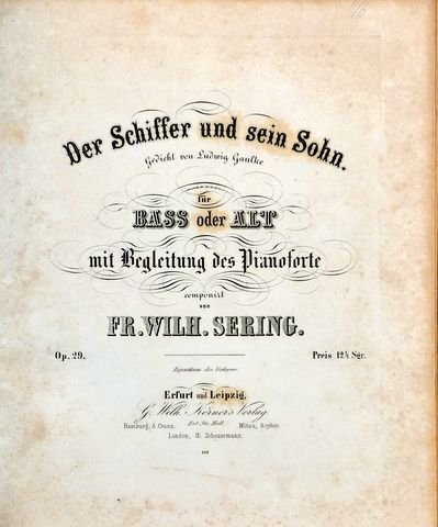 | Titel: | Der Schiffer und sein Sohn. Gedicht von Ludwig Gaulke für Bass oder Alt mit Begleitung des Pianoforte. Op. 29 |