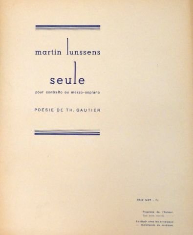 Lunssens, Martin: - Seule. Pour contralto ou mezzo-soprano. Poé