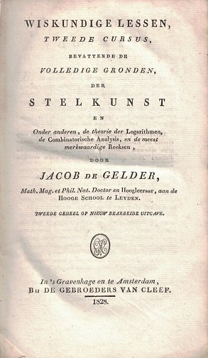 Gelder, Jacob de - Wiskundige lessen, tweede cursus, bevattende