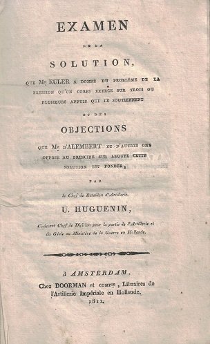 Huguenin, U. - Examen de la solution que mr Euler a donné du pr