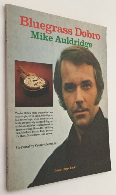 12 Dobro solos transcribed exactly as played by Mike Auldridge and his recordings, with performance hints and specially designed diagram tablature. Includes complete music to Tennessee Stud, House of the rising sun, Maiden's prayer, Rock bottom, It's over, Greensleeves, and others. Foreword by Vassar Clements. Scarce copy of this original instruction book for playing the Dobro Guitar. Good/ fine, no inscriptions