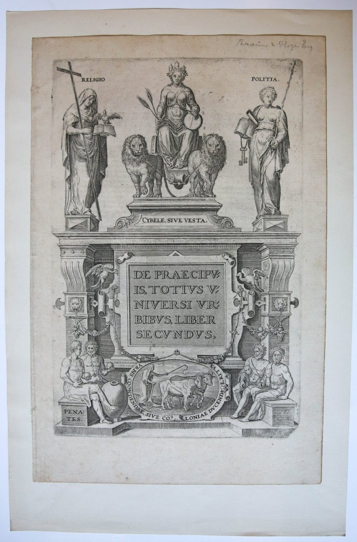 | Titel: | [Antique title page, 1575] Rhea, Religie, Bestuur en huisgoden [Totius Universi Urbibus, Liber Secundus], published 1575, 1 p. |
