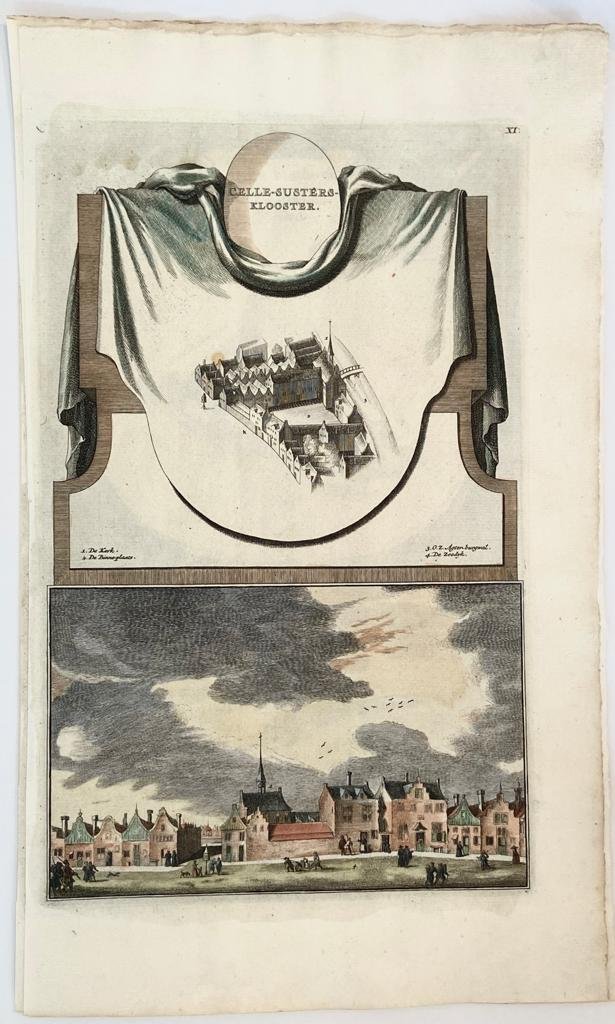 | Titel: | Handgekleurde gravure/Handcoloured engraving Jan Goeree - Celle-Susters-Klooster (Cellezusters klooster Amsterdam), ca 1765. |