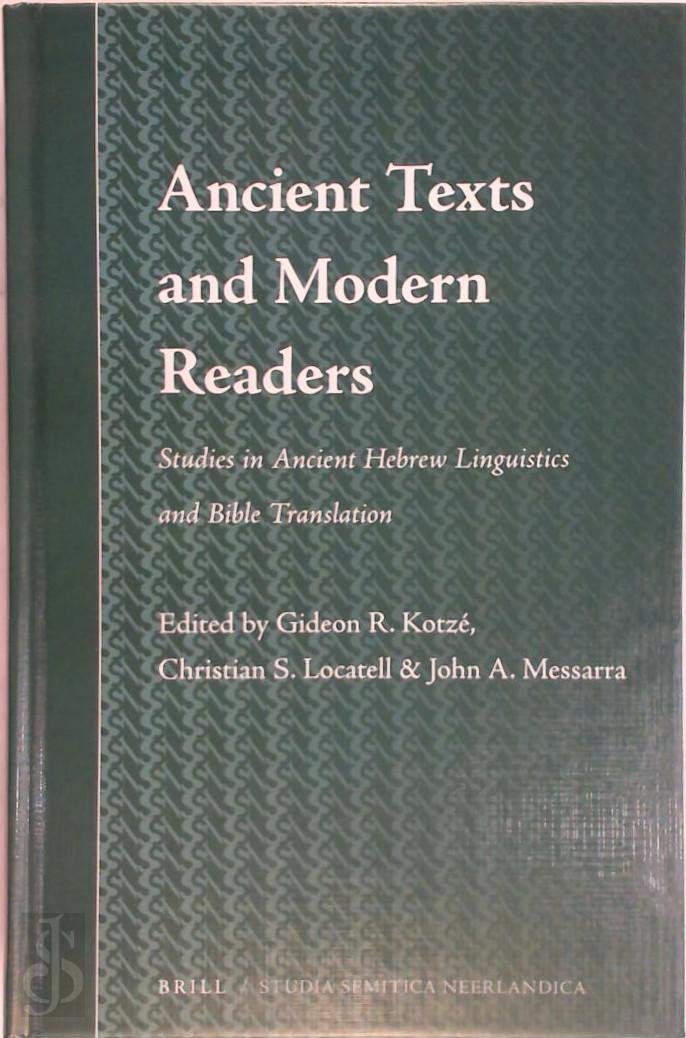 The chapters of this volume address a variety of topics that pertain to modern readers' understanding of ancient texts, as well as tools or resources that can facilitate contemporary audiences' interpretation of these ancient writings and their language. In this regard, they cover subjects related to the fields of ancient Hebrew linguistics and Bible translation. The chapters apply linguistic insights and theories to elucidate elements of ancient texts for modern readers, investigate how ancient texts help modern readers to interpret features in other ancient texts, and suggest ways in which translations can make the language and conceptual worlds of ancient texts more accessible to modern readers. In so doing, they present the results of original research, identify new lines and topics of inquiry, and make novel contributions to modern readers' understanding of ancient texts. Contributors are Alexander Andrason, Barry L. Bandstra, Reinier de Blois, Lénart J. de Regt, Gideon R. Kotzé, Geoffrey Khan, Christian S. Locatell, Kristopher Lyle, John A. Messarra, Cynthia L. Miller-Naudé, Jacobus A. Naudé, Daniel Rodriguez, Eep Talstra, Jeremy Thompson, Cornelius M. van den Heever, Herrie F. van Rooy, Gerrit J. van Steenbergen, Ernst Wendland, Tamar Zewi.