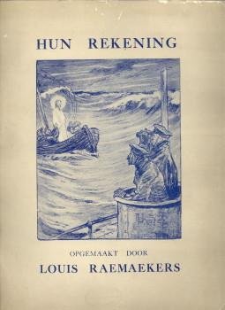| Meer info: | Zonder jaar [1918]. 48 pp. Met een inleiding door Louis Raemaekers op de binnenkant van de voorkant kaft met met 48 anti-oorlogtekeningen in zwart-wit van zijn hand. De kaft heeft langs de randen gebruikssporen (een beetje geschaafd, en vooral haaltjes alngs de bovenrand van de voorkant kaft. |