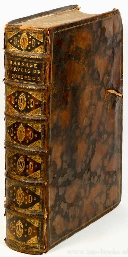 Deze uitgave behandelt de geschiedenis van de verwoesting van Jeruzalem tot ±1700 (...) Velen menen dat de twee Vervolgen bij één van de uitgaven van Flavius Josephus' werken behoren, dit is echter niet het geval. Poortman, 11b, Boekzaal van de werken van Flavius Josephus in de Nederlandse taal, 265 Basnage.'Jacques Christian (also called Basnage de Beauval; 1653-1725), Protestant divine and historian. After the revocation of the Edict of Nantes he accepted a call as pastor to Rotterdam (1686) and later to The Hague (1691). He wrote several books, the most famous being L'histoire et la réligion des Juifs depuis Jésus Christ jusqu'á present (5 vols., 1706-11) (...) which was praised by Voltaire. The book was intended to supplement and continue the history of Josephus, but is marred by the author's inadequate knowledge of Hebrew, which obliged him to rely on Latin translations of Jewish sources and authors. He made use of the works of Buxtorf and Arias Montano and other Christian scholars. (...) his book enjoyed great popularity and was the basis for later, more informed Jewish histories. (...) His books are important as the first comprehensive and truly erudite history of the Jews in the Christian era, filling a gap between early Jewish historical writings and modern Jewish historical research Encyclopaedia Judaica, 4, 309-310 NNBW, 2, 95-98