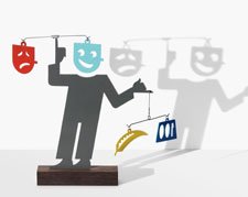 Joost Swarte maakte speciaal voor Mobi-Movi dit ontwerp. Het gaat om een typisch ‘Joost Swarte figuurtje’ zoals wij uit zijn illustraties kennen. Door de wind of aanraking verandert de figuur van stemming: blij of zwaarmoedig. Dat zie je in het object zelf, maar ook in de schaduw die het werpt op de muur. De verfijnde uitsneden in het materiaal en de speling van het licht, geven een bijzonder effect. |