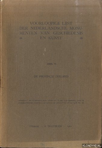 | Titel: | Voorloopige lijst der Nederlandsche monumenten van geschiedenis en kunst. Deel VI: Deprovincie Zeeland |