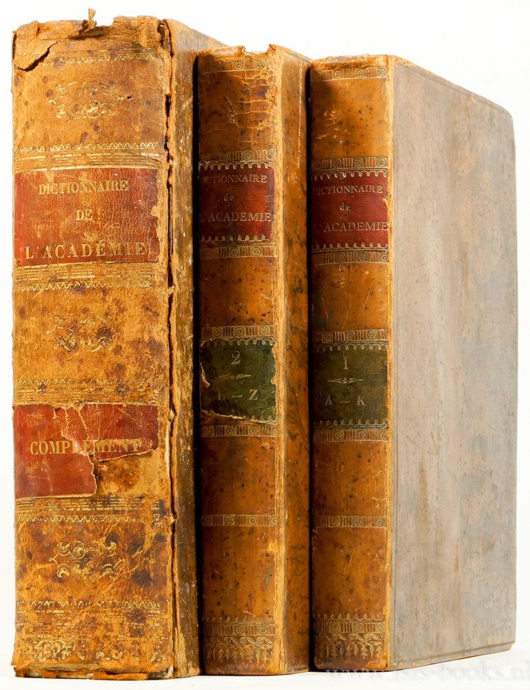 | Meer info: | Volume 1: A - K, Volume 2: L- Z, Volume 3: Complément du dictionnaire de l'Académie Française |
