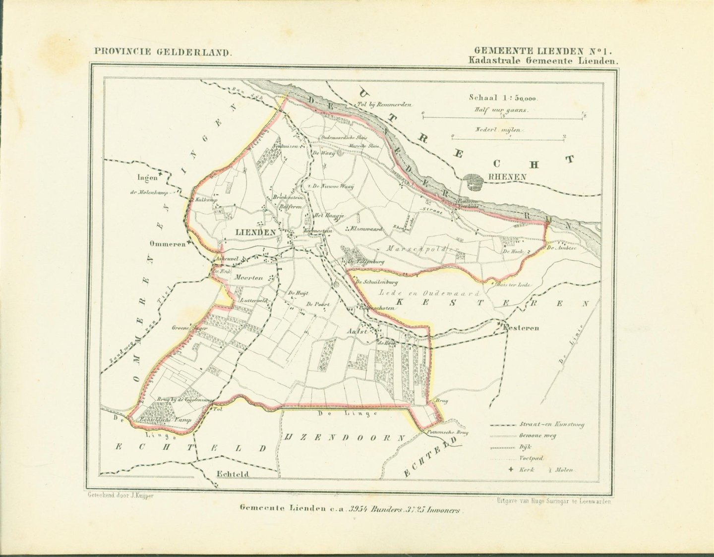 Kuyper Jacob. - LIENDEN. Map Kuyper Gemeente atlas van GELDERLA