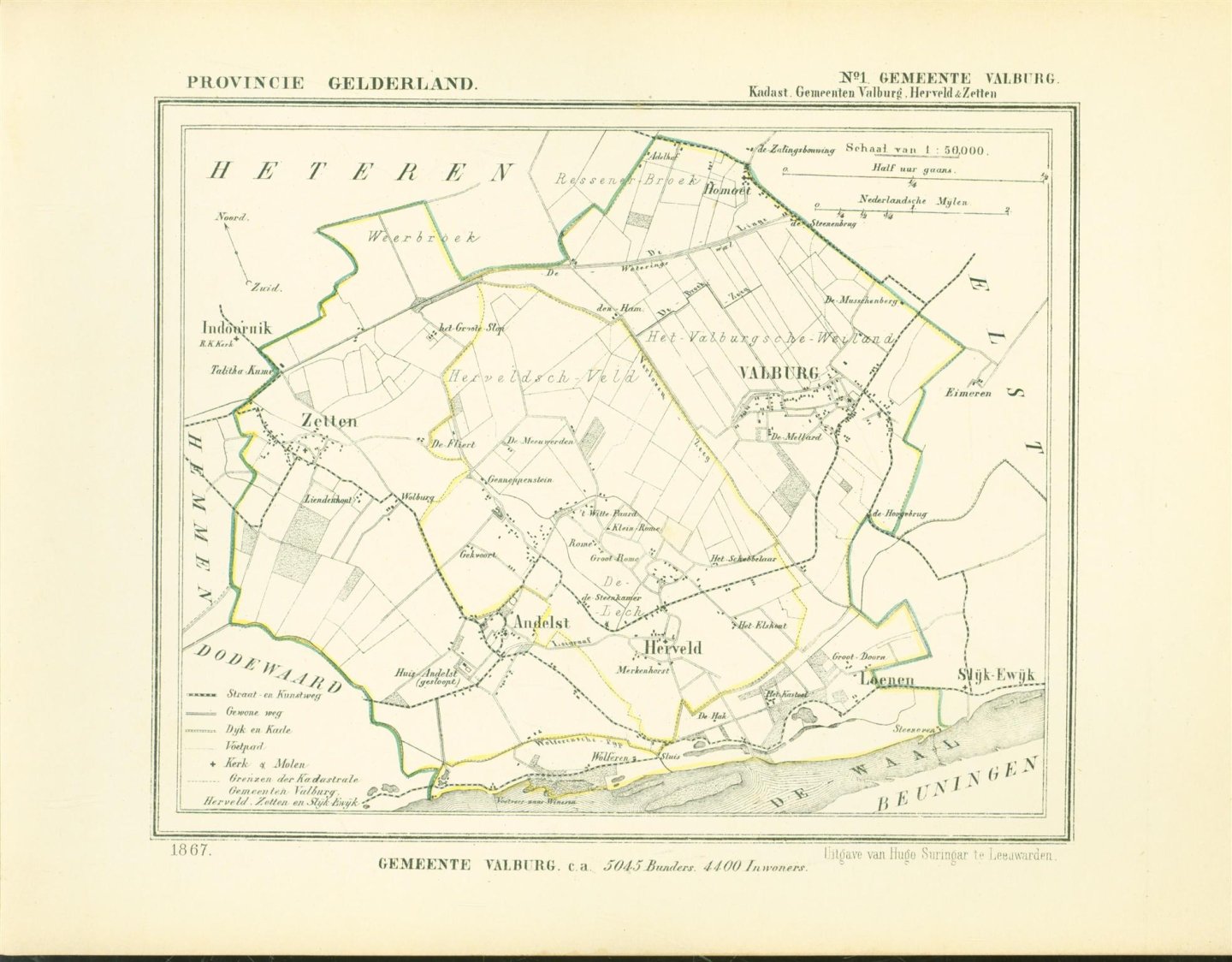 | Titel: | VALBURG ( Kadastrale gemeenten VALBURG HERVELD en ZETTEN ) . Map Kuyper Gemeente atlas van GELDERLAND |