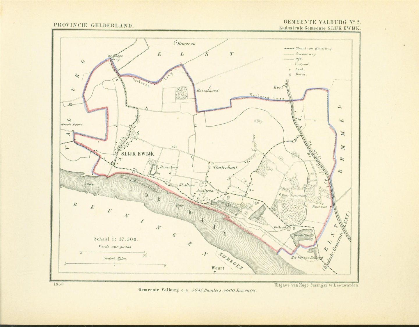 | Titel: | VALBURG ( Kadastrale gemeente SLIJK EWIJK ). Map Kuyper Gemeente atlas van GELDERLAND |