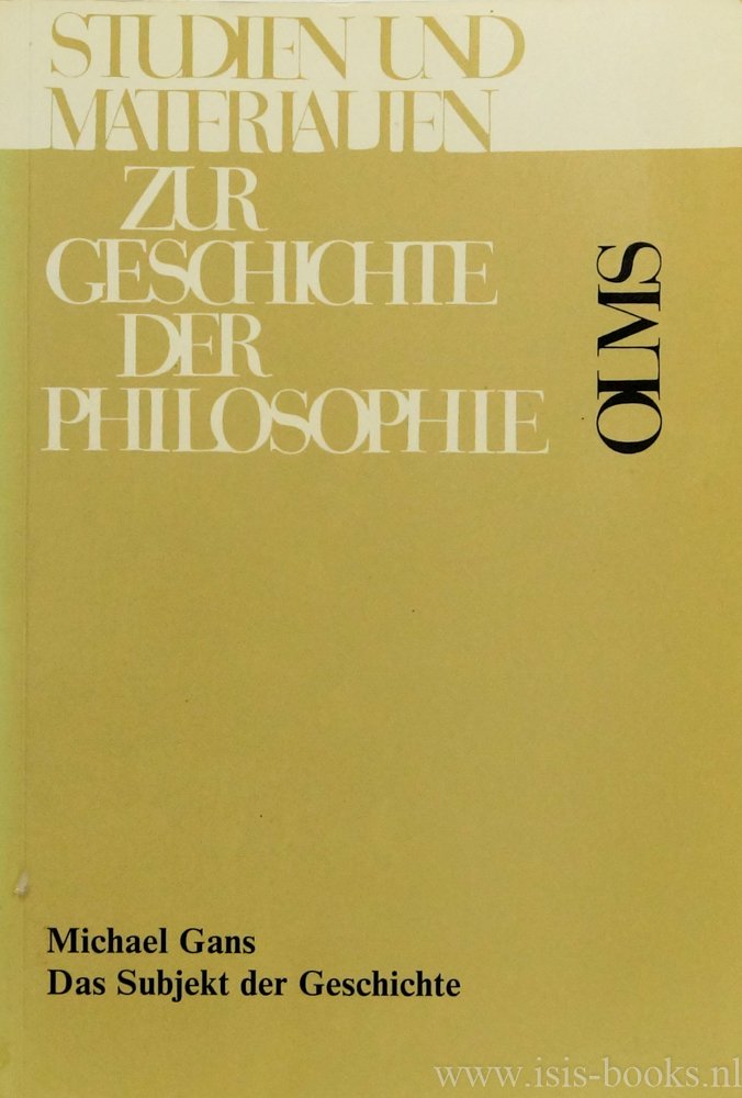 GANS, M. - Das Subjekt der Geschichte, Studien zu Vico, Hegel u