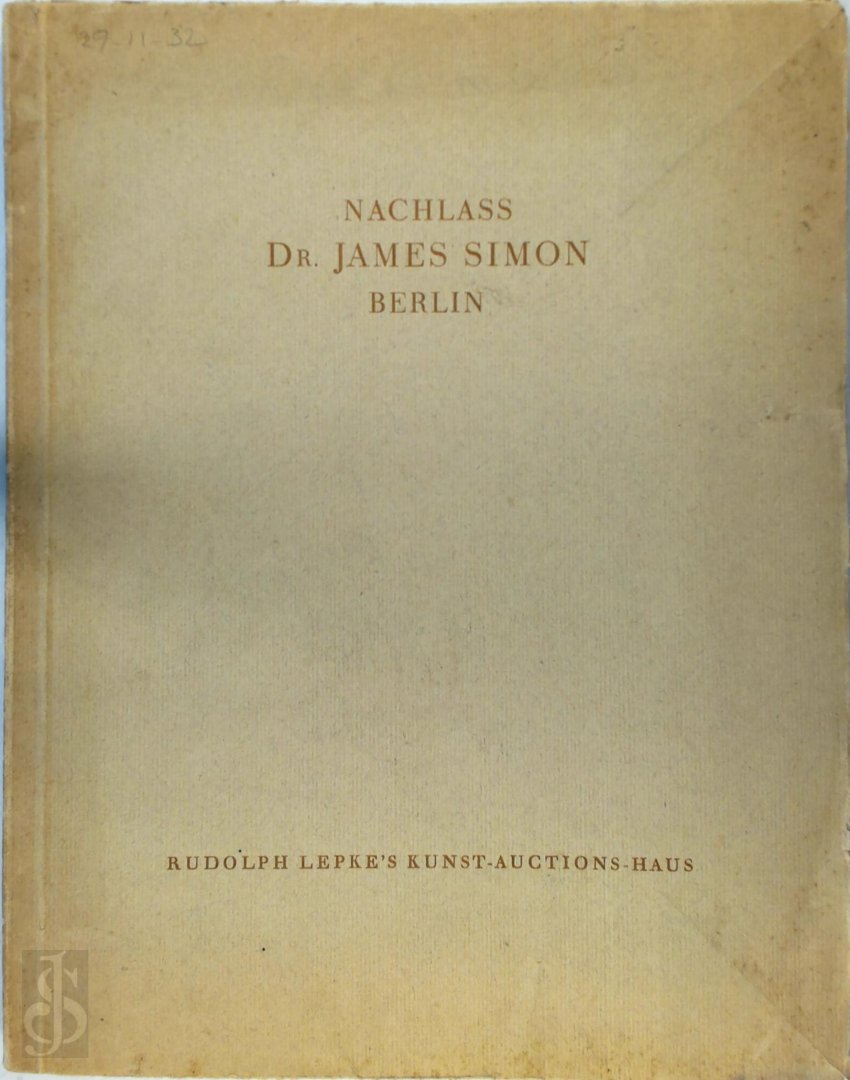 | Titel: | Nachlass Dr. James Simon Berlin. Katalog zur Auktion. Mit Vorworten von M.J. Friedlander und Robert Zahn, sowie Abb. auf Tafeln |
