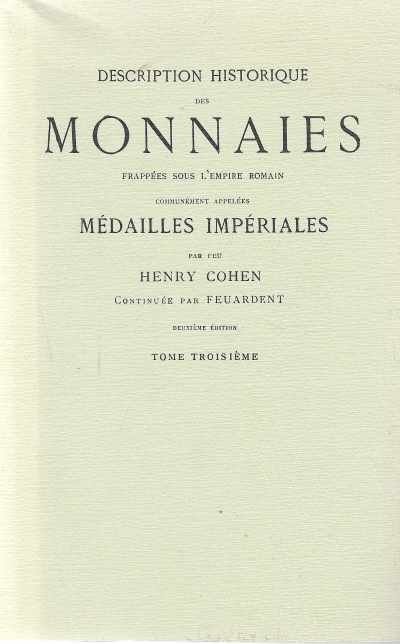 Description Historique Des Monnaies Frappees Sous L'Empire Romain (Met Ex-Libris) Description Historique Des Monnaies Frappees Sous L'Empire Romain. Communément appelées. Médailles Impériales. Par feu Henry Cohen. Continuée par Feuardent Deuxieme Edition. Tome Deuxiéme. |