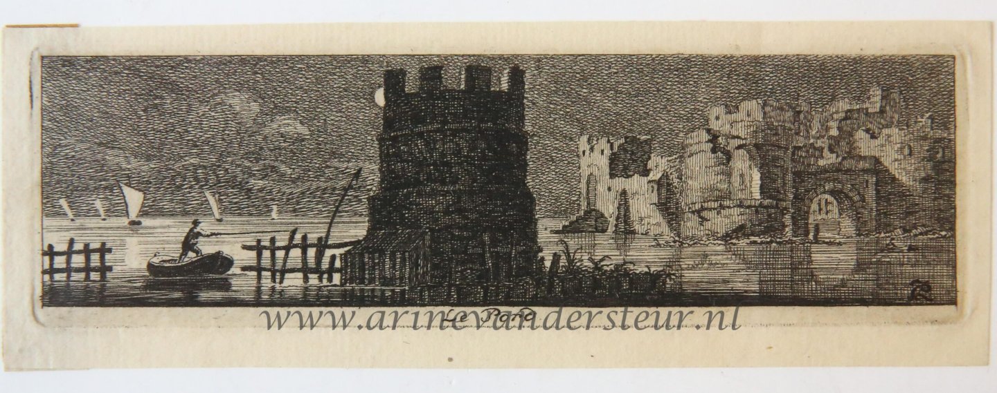 Bijzonderheden: Small view on a harbor (le Port/De haven) at night. On the right ruined buildings.Monogrammed on the bottom right corner: CPJ.From a set of small landscapes: ‘Landschapjes, Rúwientjes enz.’ published in 1766.[NL] Havengezicht bij nacht met op...