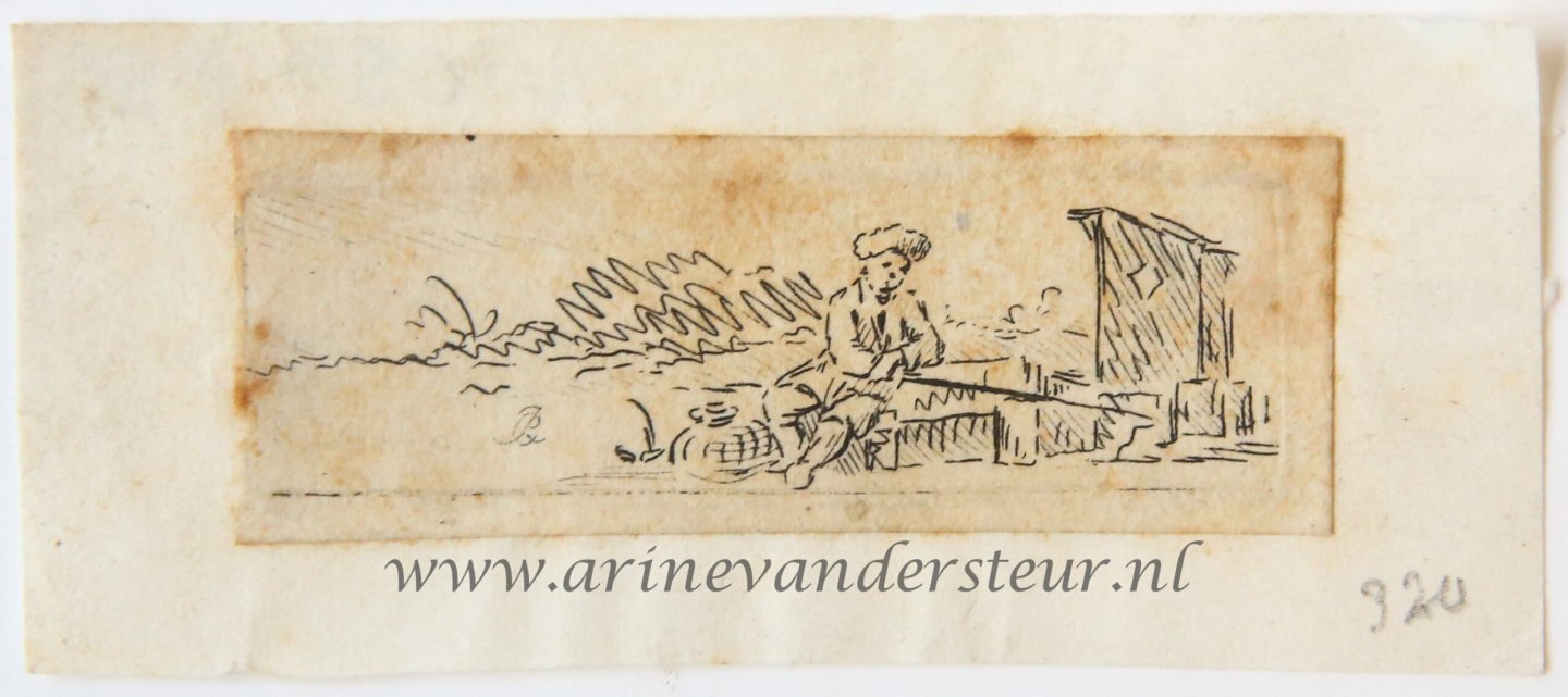 | Bijzonderheden: | Small print with a fisherman fishing.From the set: ‘Landschapjes, Rúwientjes enz.’ published in 1766.[NL] Landschap met een visser. |