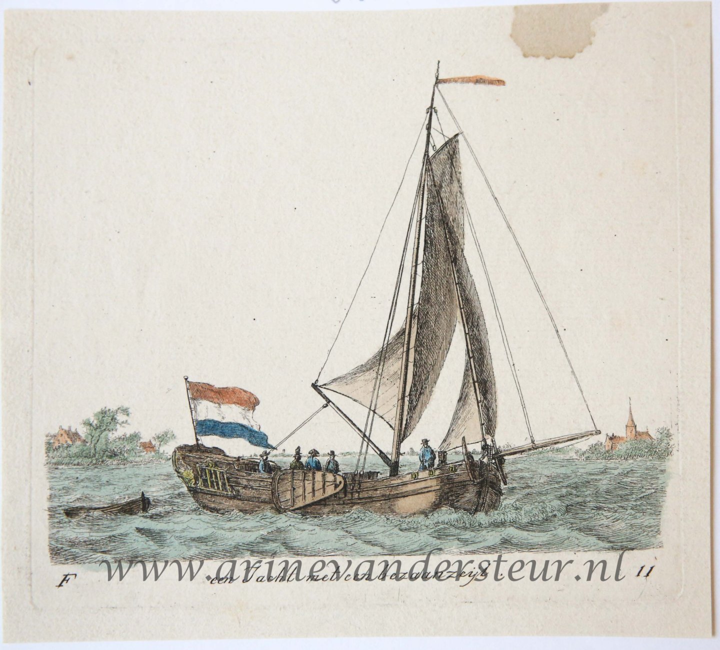| Titel: | Handcolored etching/handgekleurde ets: Een Jacht met een bezaanzeijl/a sailing boat, 1791. |