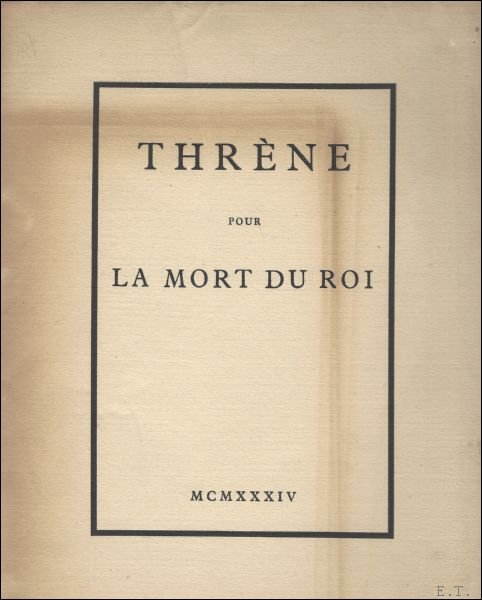 BRAUN, Thomas - Thrène pour la mort du roi.