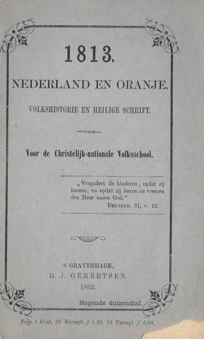 1813 Nederland en Oranje 1813 Nederland en Oranje. Volkshistorie en heilige schrift. Het huis van Oranje-Nassau is telkens het middel geweest waarvan God Almagtig zich, wanneer de nood op het hoogst was geklommen, tot redding van Nederland bediend heeft. De profetische zinspreuk van dit Nationaal Stamhuis was: Ik zal handhaven. |