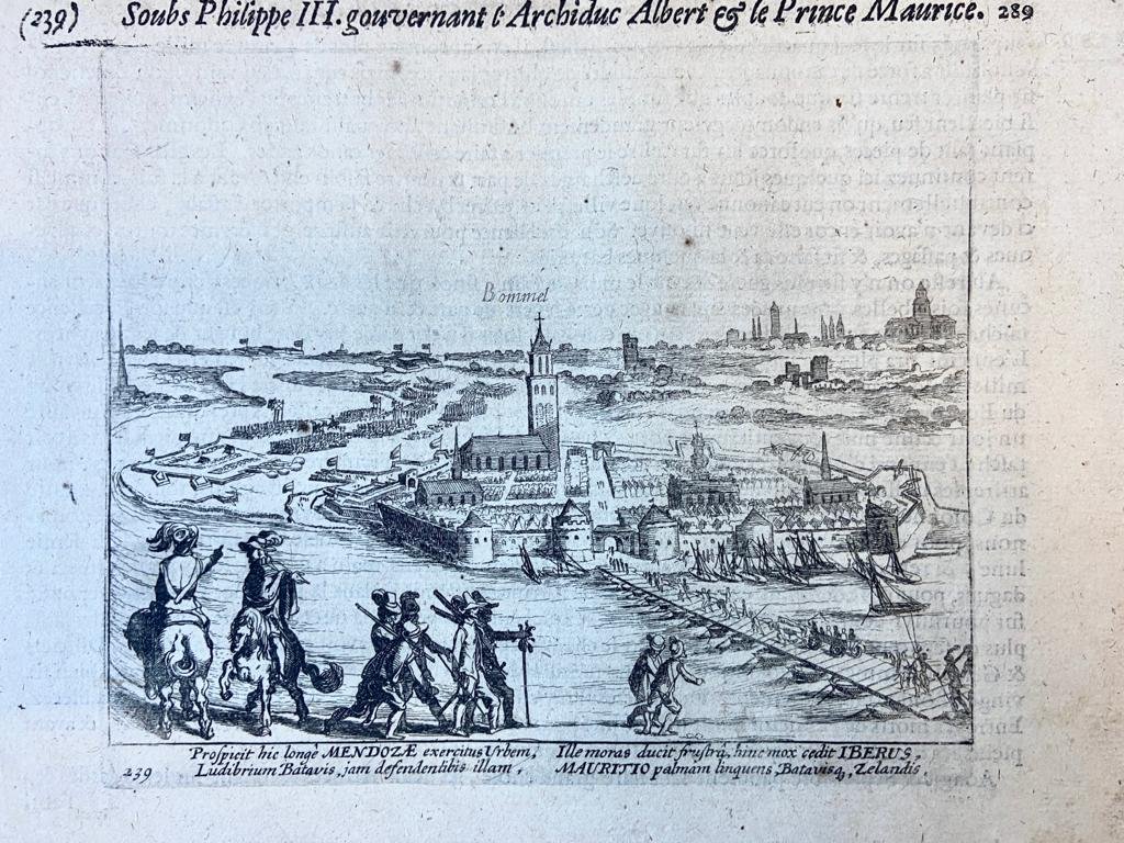 | Titel: | Copperplate etching/engraving of Prince Maurits taking over Bommel/Zaltbommel, in the Dutch province of Gelderland, in 1599. (plate 239). |