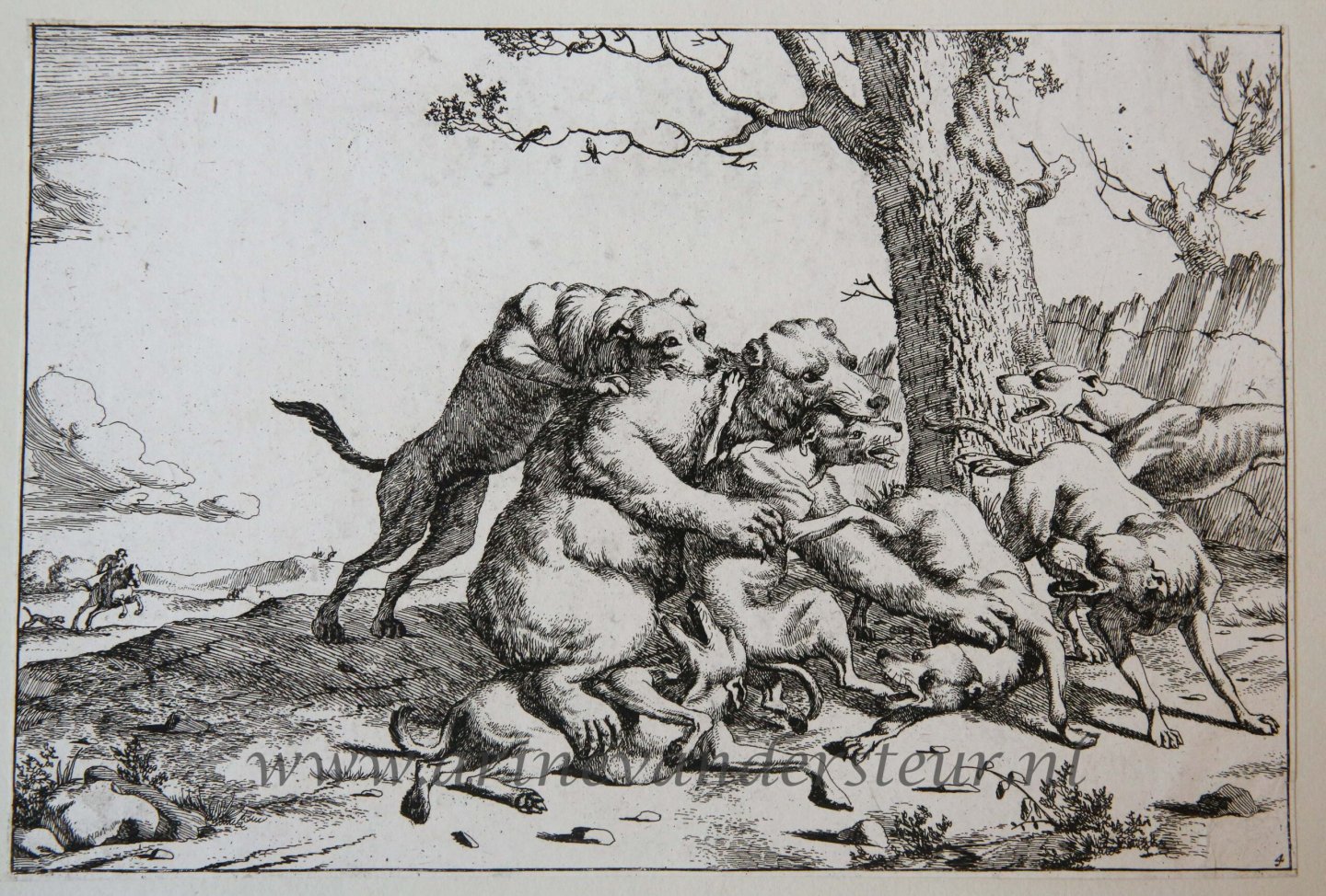 | Titel: | Hunting bulls, wolves, wild boars and bears [complete set of four etchings]/Jagende stieren, wolven en beren, ca 1660. |