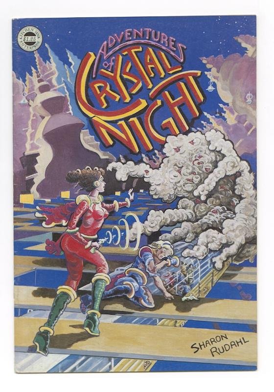 Underground comic book in b/w. As Dan Nadel wrote in his comics anthology Art in Time (2010), "Sharon Rudahl's masterpiece, The Adventures of Crystal Night, was released just a little too early to have the impact it deserved. (...) It contains as many visual and literary ideas as Rudahl could cram into thirty-five pages. A story of class stratification, rebellion, and identity in a far-flung Jewish future, one can only imagine the bewilderment it engendered more than two decades ago." - Bookseller's stamp on first page. Split (1 cm) at bottom of spine, otherwise a Near Fine copy..