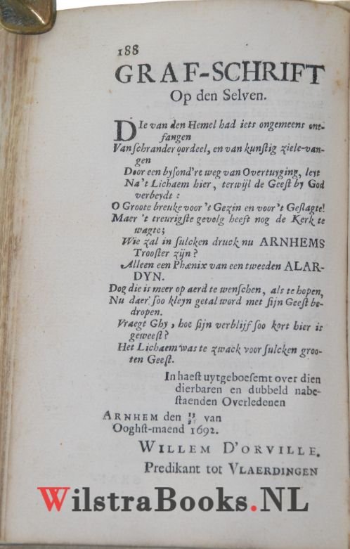 | Bijzonderheden: | 1692|1693, [8], 246 pag. Volledig perkament. Twee zeldzame werken met 1e druk van Psalm 1 van Kasparus Alardin en tevens een 1e druk van Psalm 2 van Cornelis de Hase. |