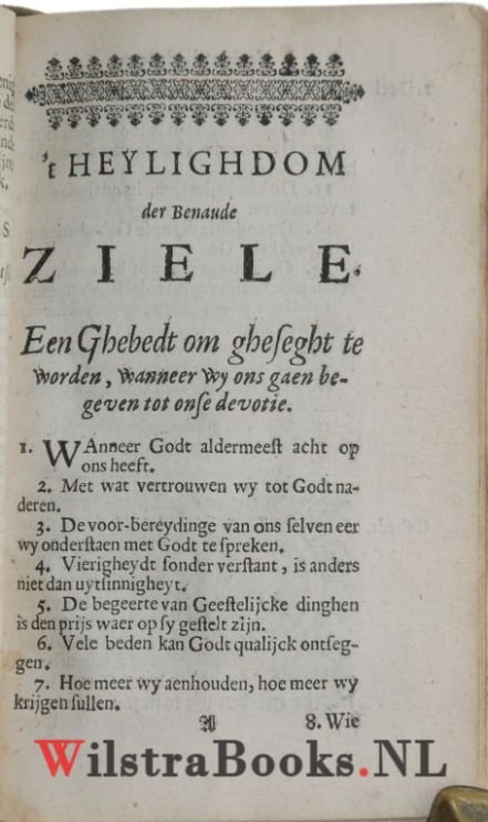 | Titel: | Het Heylighdom der benaude Ziele, 't Eerste Deel tracterende van de Doodt, het Oordeel, de pijnen der Hellen, ende de vreughden des Hemels. Het twede deel, de Passien onses Heeren Jesu Christi: Midtsgaders Vele heylighe Gebeden ende Meditatien... |