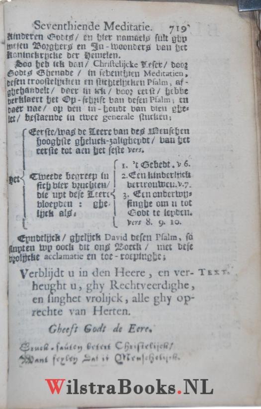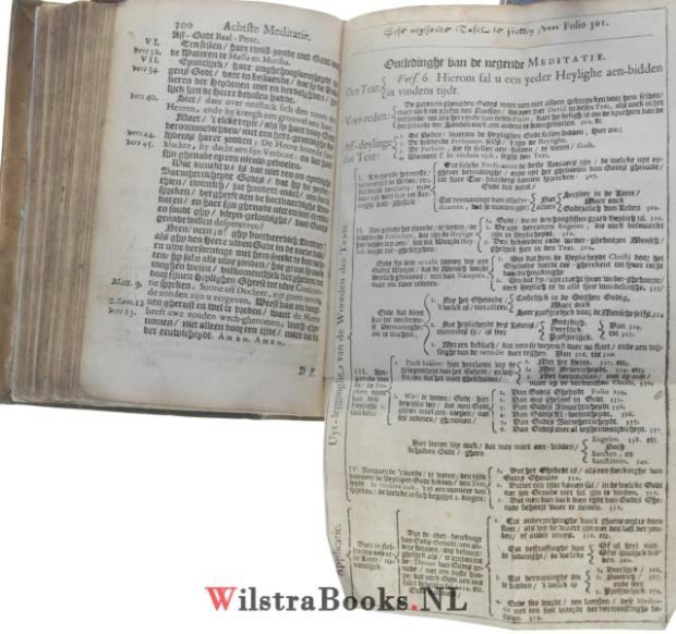 | Bijzonderheden: | 1656, (16) 719 (17) pag., Origineel overslaand Perkament, 1e druk, (frontispice in kopie, compleet met alle (uitvouwbare) kopergravures). Verklaring van Psalm 32. Goed boekblok, heldere pagina's. In goede antiquarische staat. |