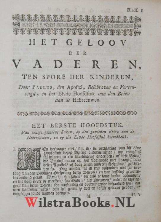 | Titel: | Het geloov der vaderen, ten spore der kinderen, door Paulus, den apostel, beschreven en vereeuwigd, in het elvde hoofdstuk van den Briev aan de Hebreeuwen, en... verklaard door Joan vanden Honert, T.H. soon..., die daarin ook onstandig handelt... |