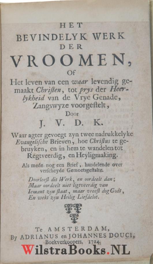 J.V.D.K. - Het Bevindelyk Werk der Vroomen, Of Het leven van ee