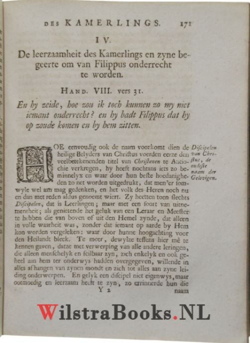 | Titel: | De Bekeering des Kamerlings van Candace, volgens de beschryving van den H. Lucas Handel. VIII. vers 26-40. Als een doorluchtig staal van Godts overdierbare genade, ten aanzien zyner uitverkorenen, zo in het eerste ogenblik hunner hemelse trekk... |