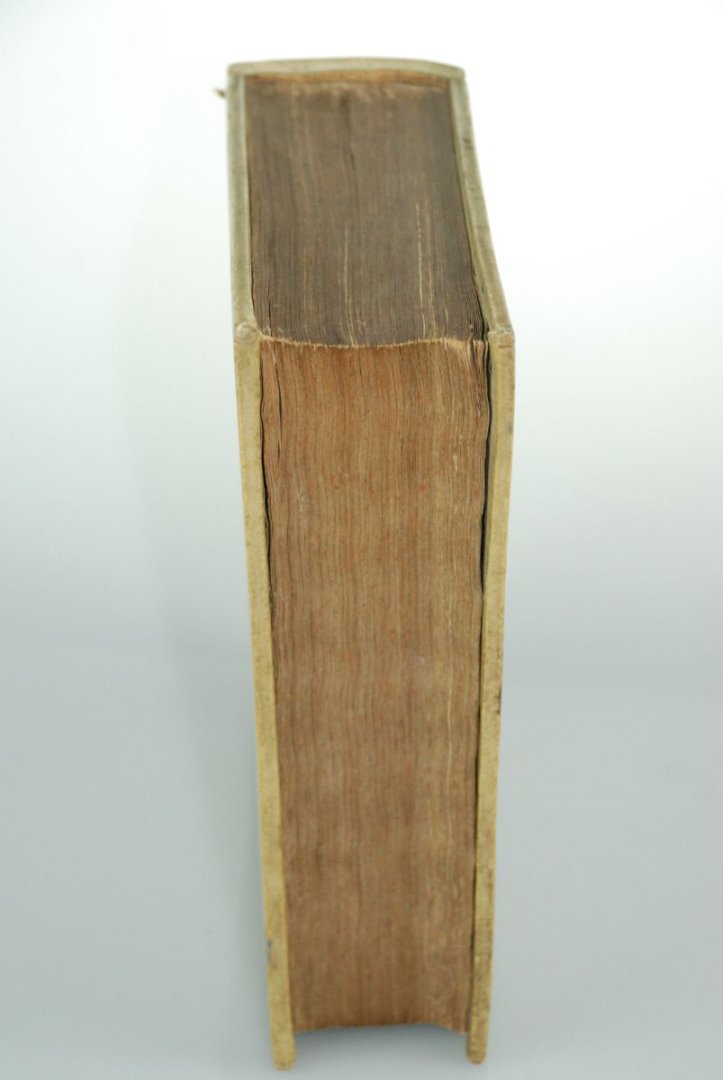| Bijzonderheden: | 1762, (56) 736 (30) pag. Origineel Perkament, 4° Bijzonder is dat dit boek niet in Gotische letter maar in Romeinse letter (onze huidige) is gedrukt, wat uitzonderlijk is voor deze tijd. Schoon en net exemplaar met goede binding en nette band. |