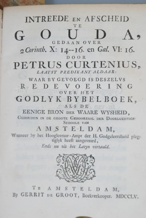 | Bijzonderheden: | 1755 / 1755 / 1755, 3 werken in 1 band, (48) 677 (27), (8) 173 (13), (8) 59 pag. Origineel Perkament, 4° (Plaatselijk wormgaatjes achterin de bovenste hoek van het eerste werk, hierdoor enkele letters tekstverlies bij de kanttekeningen, de marge ... |