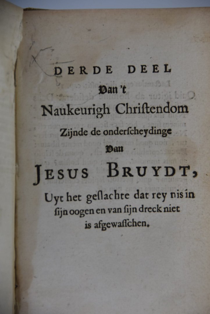 | Titel: | Het Naukeurige Christendom in drie Deelen Vervat, Waer van Het Eerste ontdeckt aen de Bruyt onses Heeren Jesu tot haer beschaminge en Vernederinge hare droevige Ziel en Levensvleckken nog in haer overigh tegen haer danck. Het Twede vertoont de... |