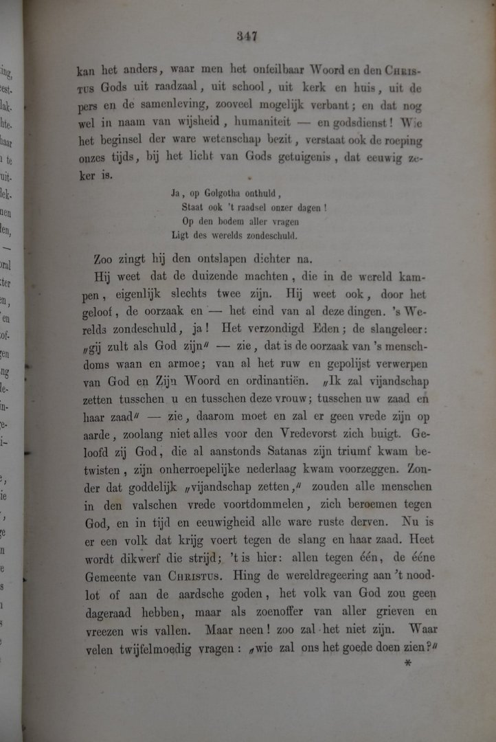 | Bijzonderheden: | 1881 -1883, (XXX,2) 562, 510 pag. , voorwoord incompleet, voorkneep is gerepareerd. Met preken van oa. Ds. Entingh, Gezelle Meerburg, L.H. van Dijk etc. (zie foto's) |