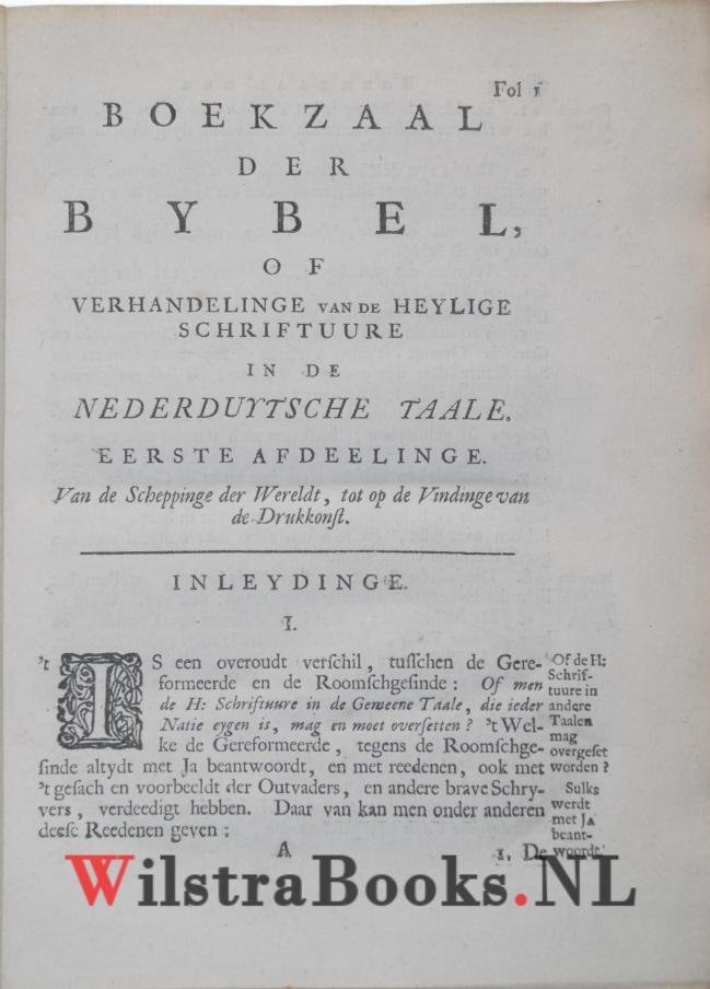 | Titel: | Boek-Zaal der Nederduytsche Bybels, geopent, in een Historische Verhandelinge van de Oversettinge der Heyligen Schriftuure in de Nederduytsche Taale, sedert deselve eerst wierdt ondernomen, beneffend de Veranderingen, welke daar omtrent door d... |
