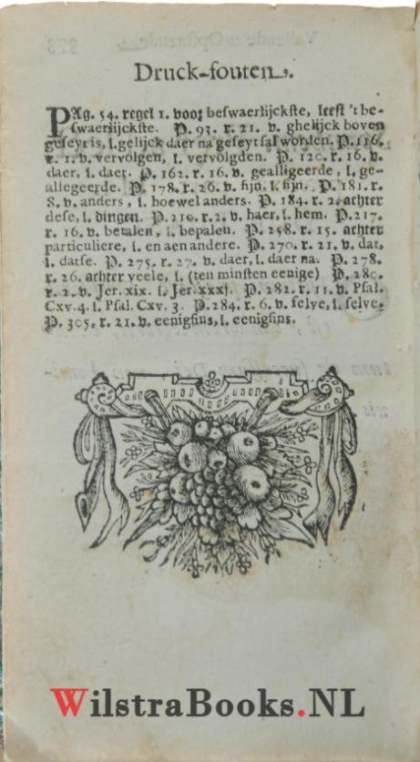 | Bijzonderheden: | 1662, (36) 373 (2) pag. 19e eeuws half leren band, voorkneep gedeeltelijk los, 12°. Goed boekblok, heldere pagina's. |