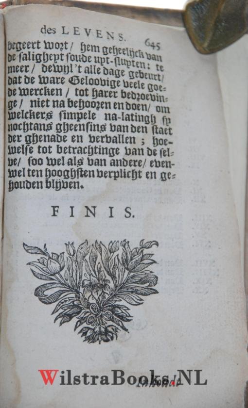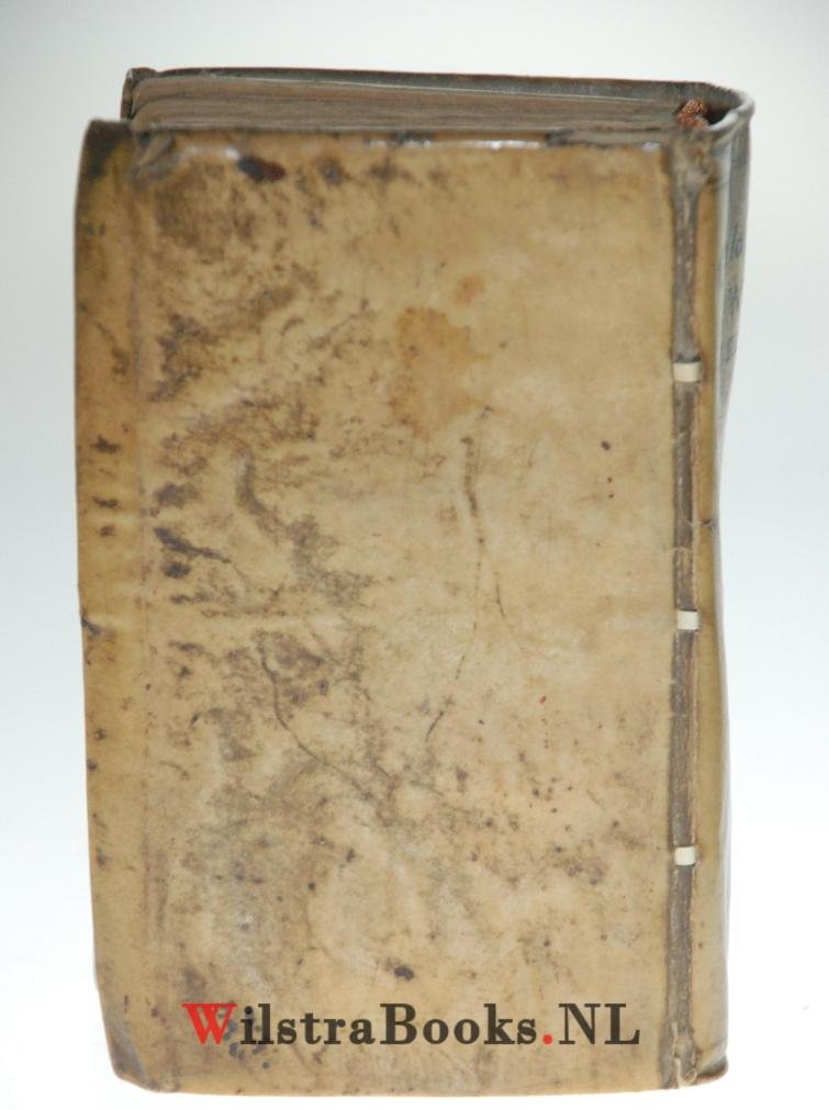 | Bijzonderheden: | 1665, (24) 645 (1) pag. Origineel overslaand Perkament, opnieuw in band gezet, 12° Met verstevigde extra gegraveerde titelpagina. (Goed boekblok, plaatselijk vochtvlek, op 2 plaatsen is voor reparatie superdun filmtape gebruikt. In goede antiqua... |