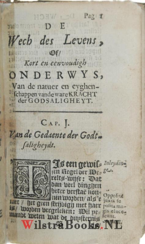 | Titel: | De Wech des Levens, Ofte, Korte ende eenvoudige Onderwyzinge, Van de Natuer ende Eyghenschappen van de ware Kracht der Godsalicheyt. Den Schijn-heyligen tot beschaminge, ende alle oprechte Christenen tot noodighe Opweckinge ende Versterckinge ... |