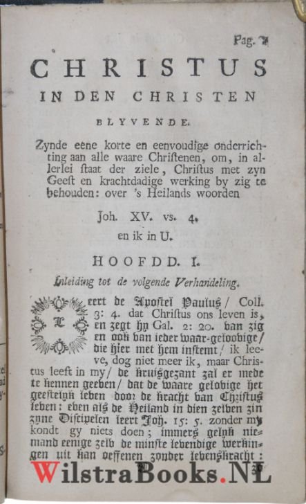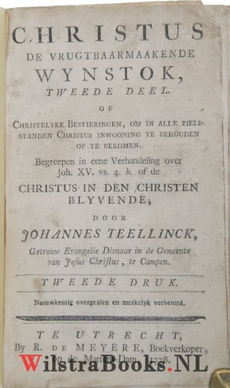 | Titel: | Den vruchtbaarmakenden wynstok Christus Tweede deel, of Christelyke bestieringen, om in alle ziels-standen Christus inwooning te behouden of te bekomen : begreepen in eene verhandeling over Joh. XV. vs. 4.b. of de Christus in den christen bly... |