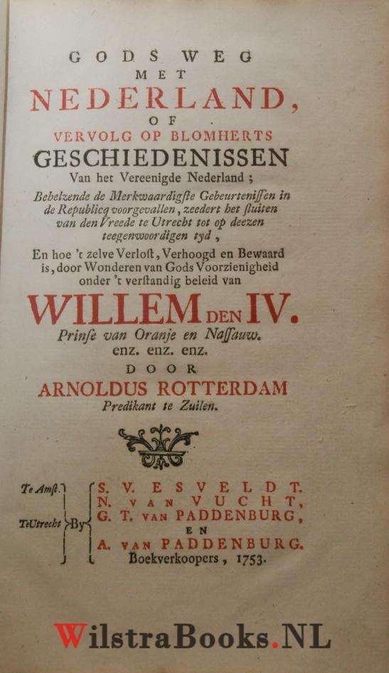 | Titel: | Gods weg met Nederland, of vervolg op Blomherts Geschiedenissen van het Vereenigde Nederland ... : onder 't verstandig beleid van Willem den IV. ... / Door Arnoldus Rotterdam |