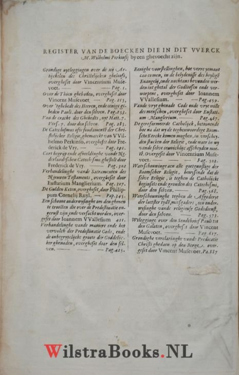 | Titel: | Opera Theologica dat is De Theologische Wercken M. Wilhelmi Perkinsi. Vervatende Verscheiden leersame ende troosteleyke Tractaeten ende uytleggingen. Vertaelt door Vincentius Meusevoet. |