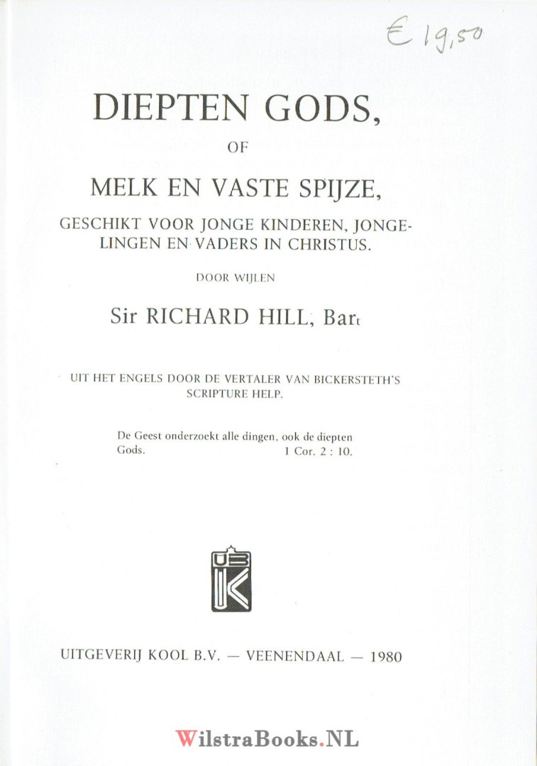 | Bijzonderheden: | Richard Hill (1732-1808) heeft als lekentheoloog verschillende boeken geschreven. Een daarvan is Deep things of God dat halverwege de negentiende eeuw in het Nederlands werd vertaald en onder de titel Diepten Gods verscheen. Het is geen verhandeli... |