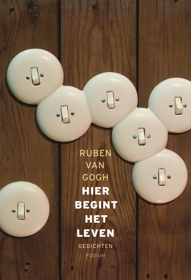 REWIND\nwie dood is blijft achter in het leven\nals een foto in zwart-wit\nik neem die laatste\nvan jou en leg je weer in je bad\nvan fixeer \nje vervaagt\ntot ik ver voorbij het geringste vermoeden\nde sluitertijd bepaal\nhoe ik je zou willen hebben\nen je uiteindelijk weer zie staan\ndruk gebarend\ndat ik voortmaken moet\nmet die camera\n\nHier begint het leven is de vijfde bundel van Ruben van Gogh. Onverschrokken gaat hij het volle leven langs. Hij dicht over de liefde, een kind, een reis. En over de dood, de smerige dood.\n\nRuben van Gogh (1967) is sinds zijn debuut De Man van Taal (1996) een veelgevraagde gast en presentator op poëziefestivals. Daarnaast werkt hij als librettist en dichter in opdracht. Hij maakt deel uit van het Utrechts Dichtersgilde.