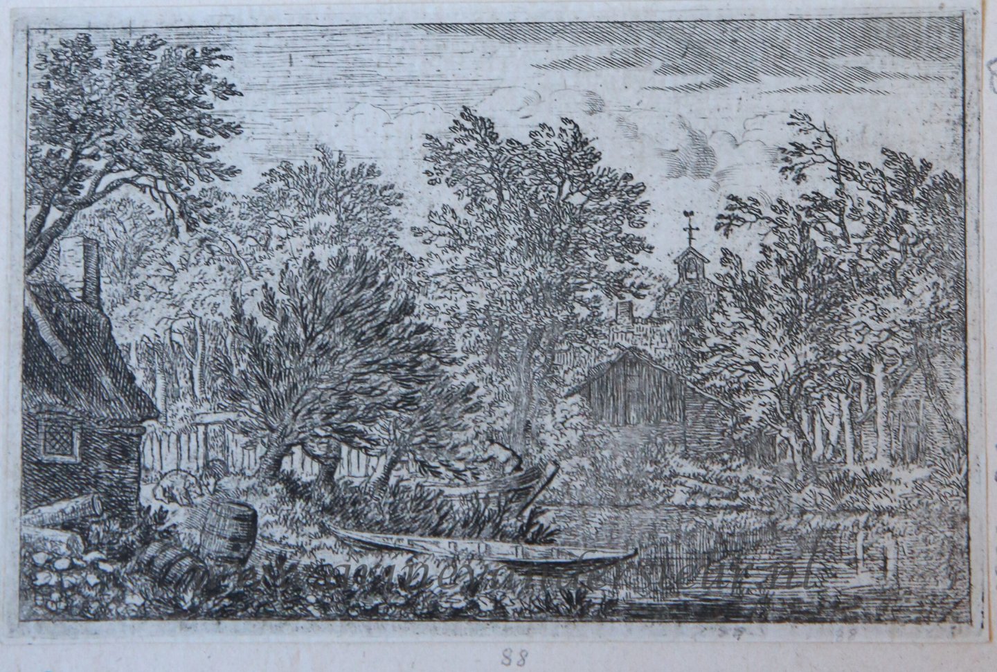 | Bijzonderheden: | Beautifully detailed etching representing a view of a canal with a church in the background. Many trees all around and on the left foreground a house and a small boat in front of it.On verso collector's mark: Pim van Eekelen (Amsterdam 1923-1984),... |