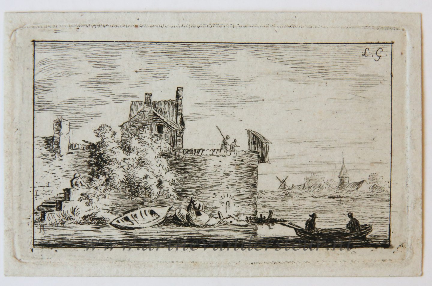 | Bijzonderheden: | Small scale copy after a river landscape by van Everdingen. Monogrammed on the top right corner: 'L.G..' On verso collector's mark of the Albertina [L.5f] and pencil annotations in German. |