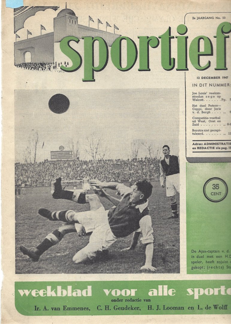| Bijzonderheden: | 1946 t/m 1952, goed, tijdschrift, 75 Sportief verschillende nummers uit 1946 t/m 1951. Kwaliteit is goed. Bladen werden in die periode op kwalitatief slecht papier gedrukt en verkleurde snel. |